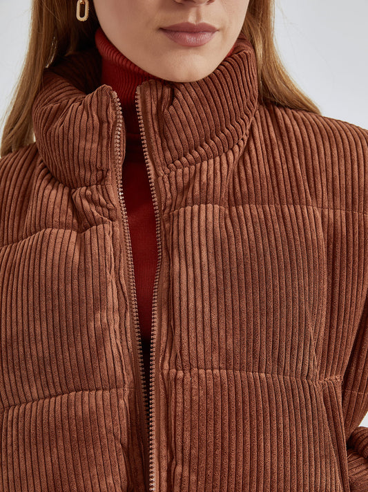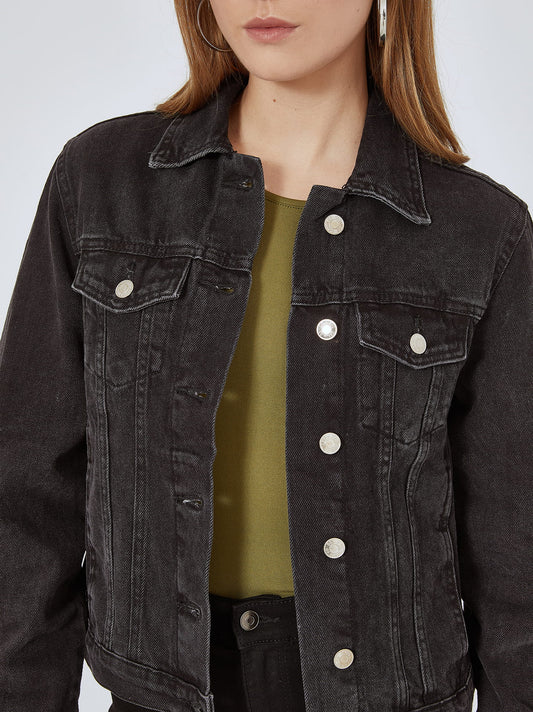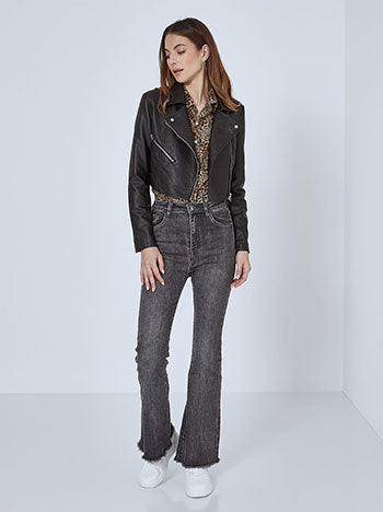 Κοντό μπουφάν δερματίνης με φερμουάρ σε μαύρο