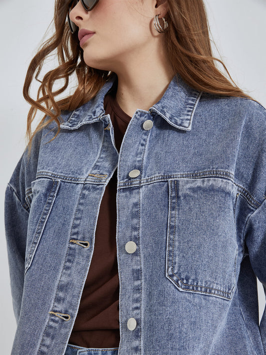 Μπουφάν τζιν με τσέπες σε μπλε ανοιχτό