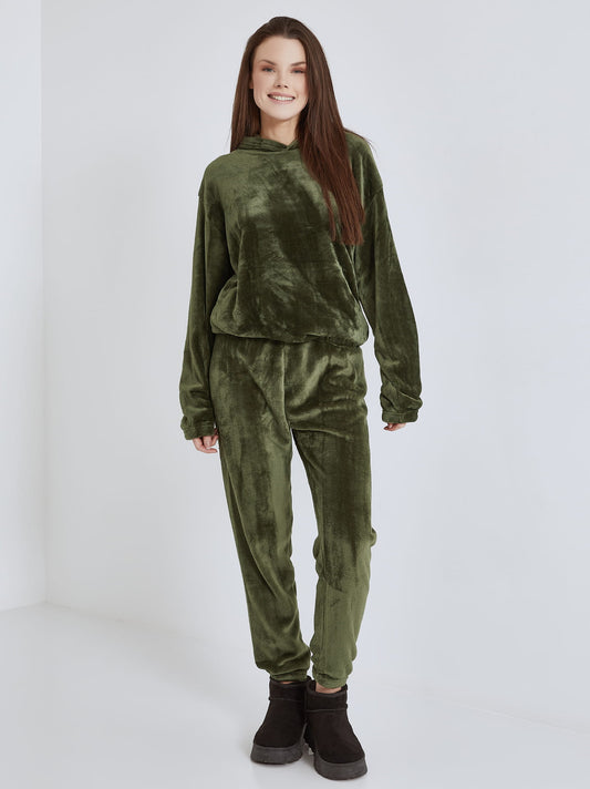 Σετ φόρμας fleece με κουκούλα σε χακί