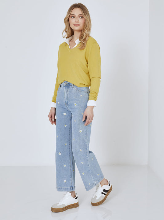Τζιν με κεντητά λουλούδια σε μπλε ανοιχτό