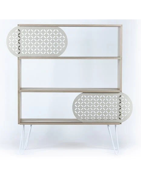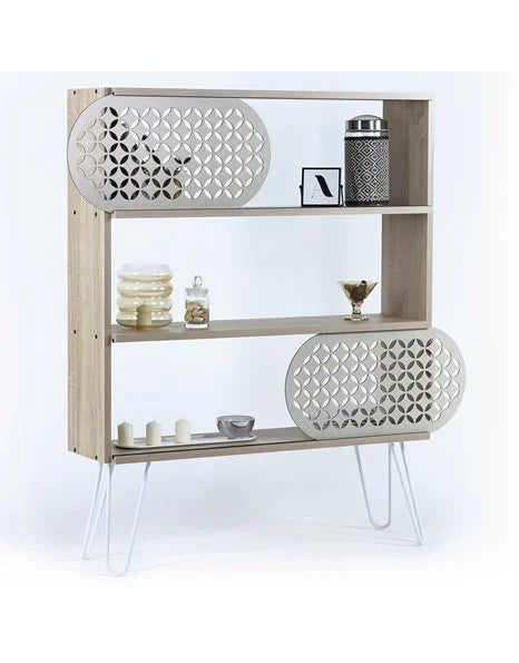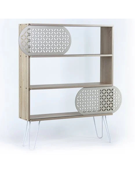 Διαθέτει 3 επιφάνειες αποθήκευσης βιβλίων και άλλων αντικειμένων με δυο συρόμενα πορτάκια.